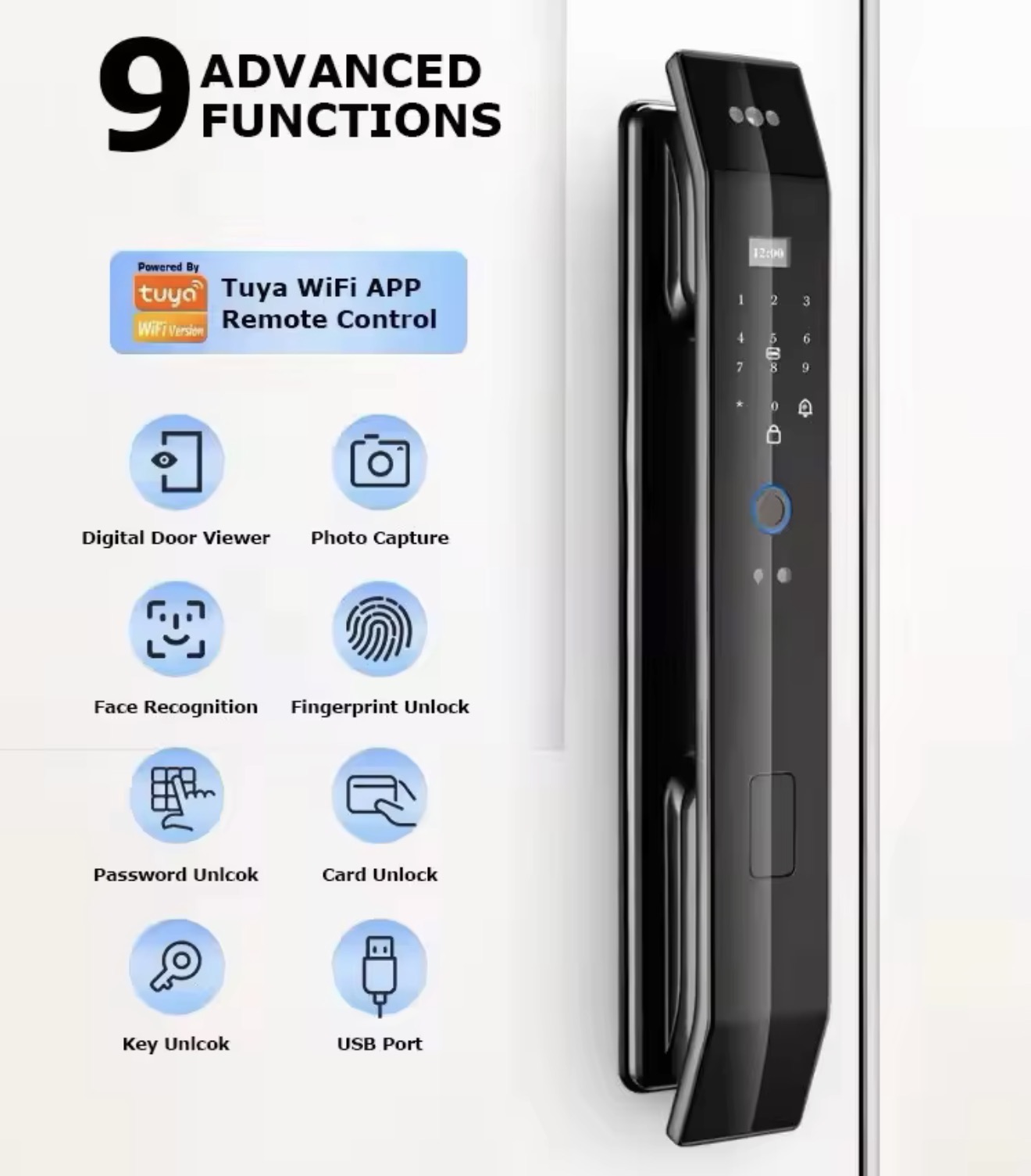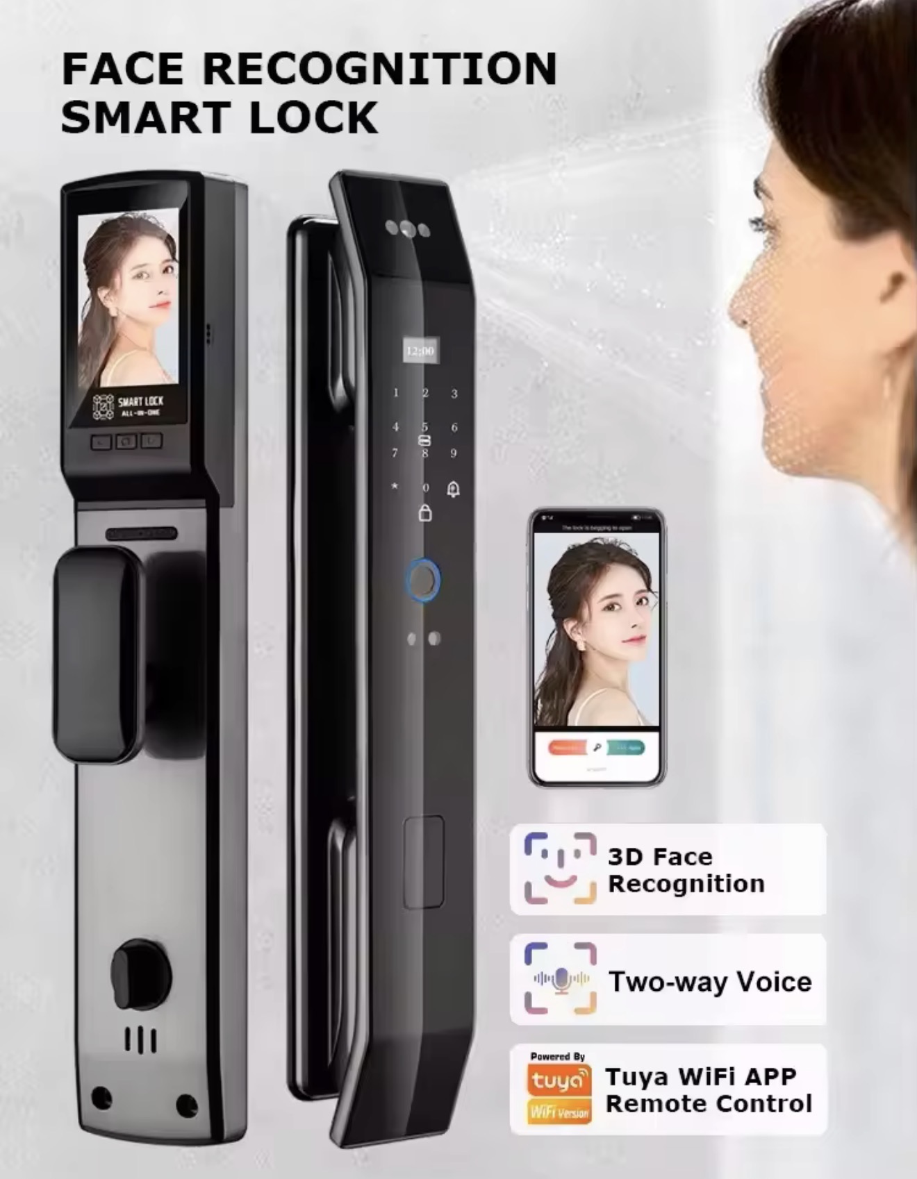 Featuring advanced 3D Face Recognition, Fingerprint Unlock, Password, RFID Card, Remote Tuya App Control, and Manual Key, it offers seven unlocking methods to fit your lifestyle. The voice prompt system and semiconductor fingerprint sensor provide smooth and fast operation every time.